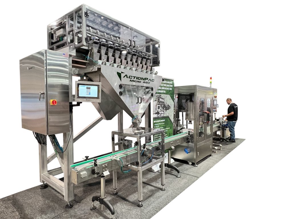 Our cannabis packaging machine processes low target weights, such as 1.000g and 3.500g, with exceptional accuracy, +/- 1-2%, at high speed and comes standard at 1 mg (0.001 g) resolution. Modularly designed for scalability and configurability, it is simply the best automated packaging scale for cannabis on the market and it’s proudly Made in the USA.25 cycles per minute equals 12,000 jars per day and free lifetime support means you’ll stay up and running for years to come.